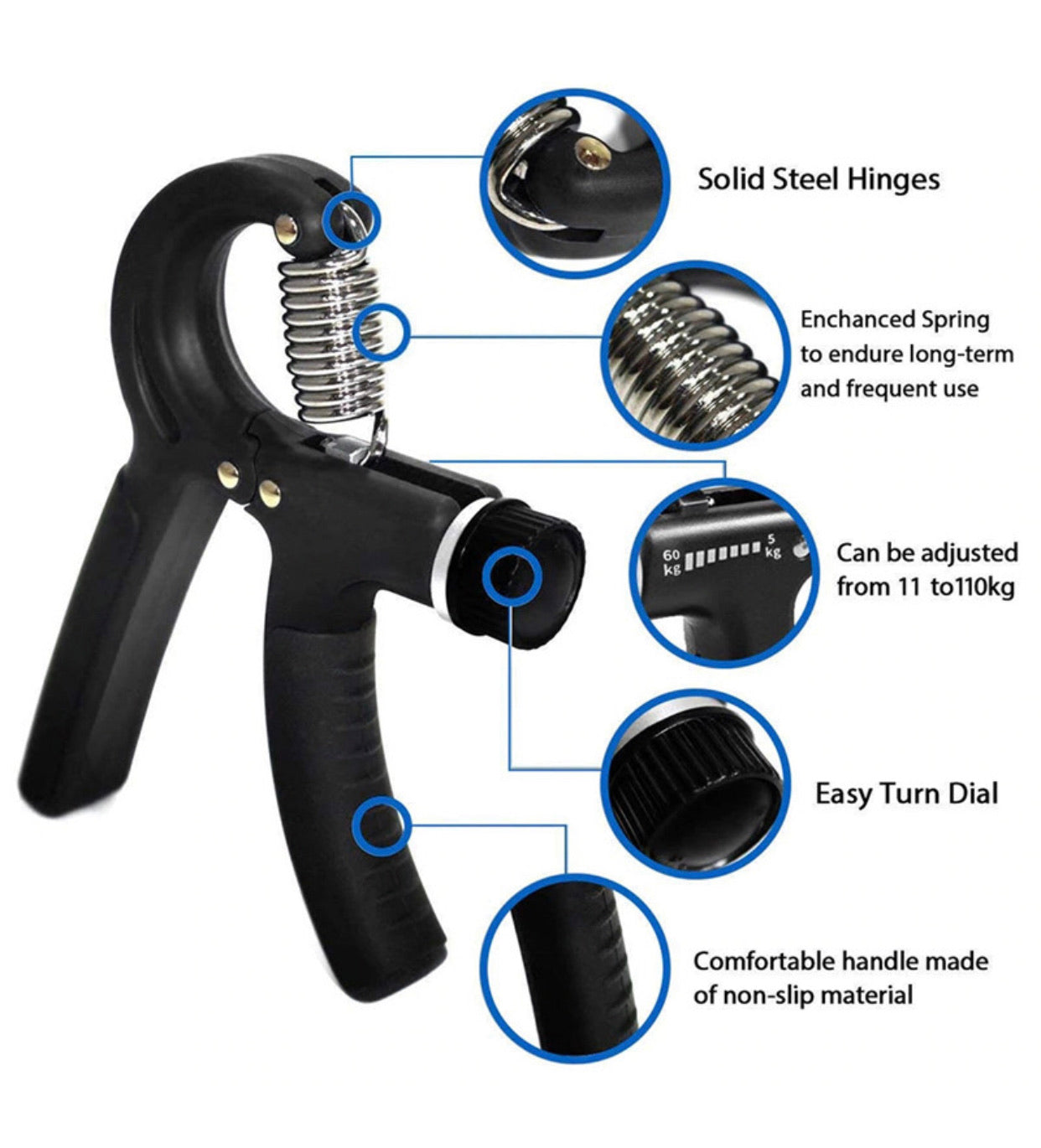 - 【ADJUSTABLE RESISTANCE】According to the needs of exercise, you can adjust the grip force in the range of 5kg-60kg (11-110 Lbs), which is very suitable for men and women who want to exercise grip strength.