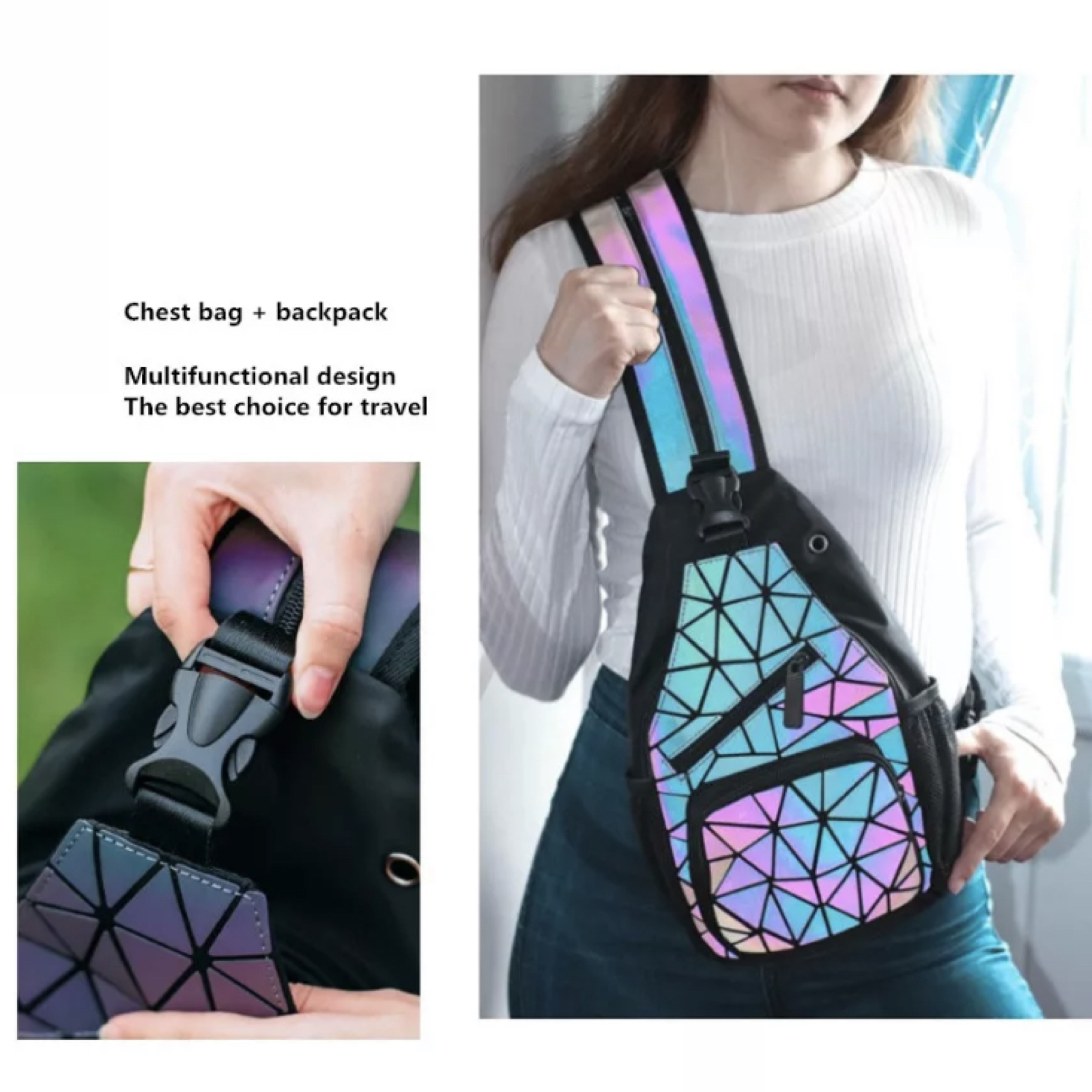 Quamtica unisex backpacks Shoulder crossbody Bags Luminous Geometric Crossbody Bags for Men and women Chest bag Urban/ Sports Travel Backpack